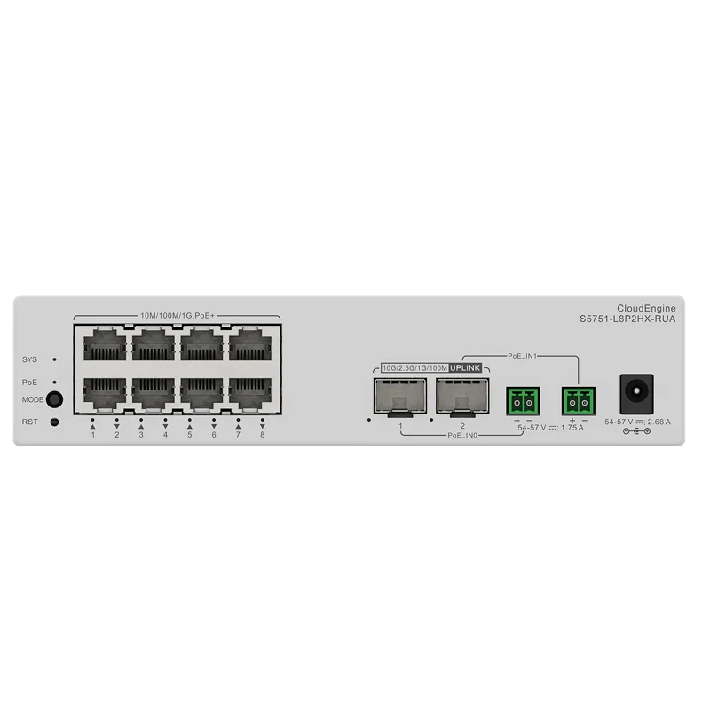 S5751-L8P2PN2X-RUA 98012495 Ethernet Switch with 8*10/100/1000base-T Ports (6*PoE+) , 2*10/100/1000/2.5gbase-T Ports (PoE+)
